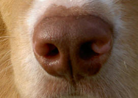 Flecken auf dem Nasenschwamm des Hundes sind bis zu einem