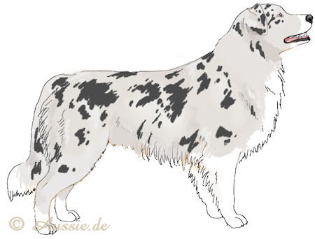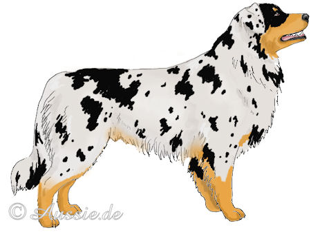 Aussie wir in Blue Merle – der Hund ist schwarz gefleckt mit