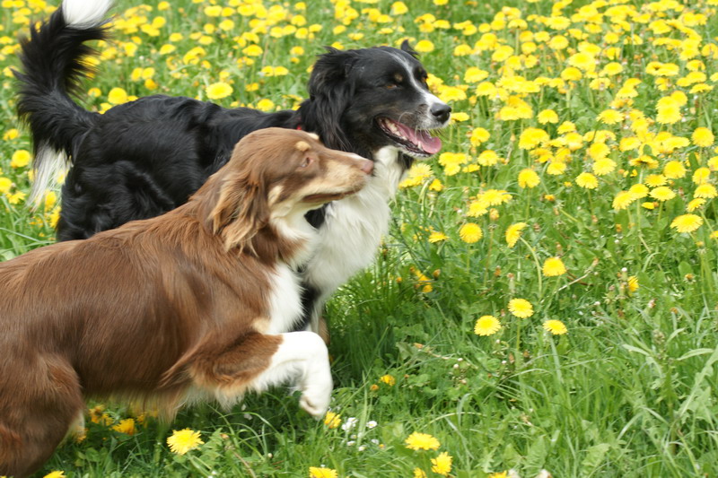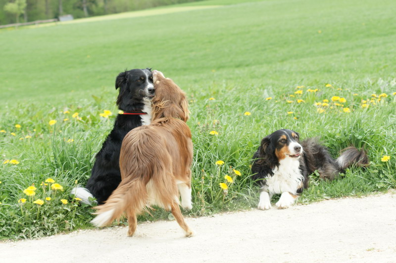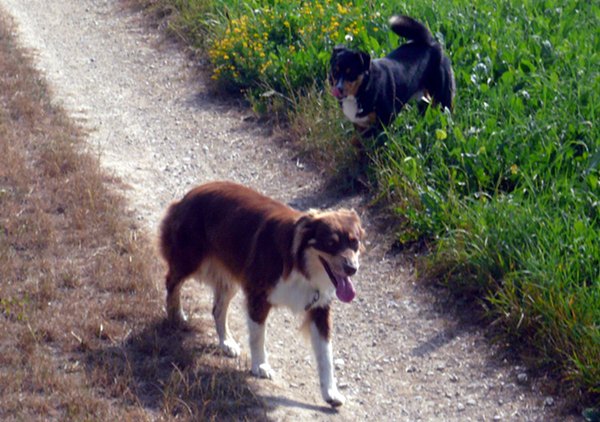 bini mit 2 Engländer is gspräch cho wo 2 Border Collie hei u die züchte.