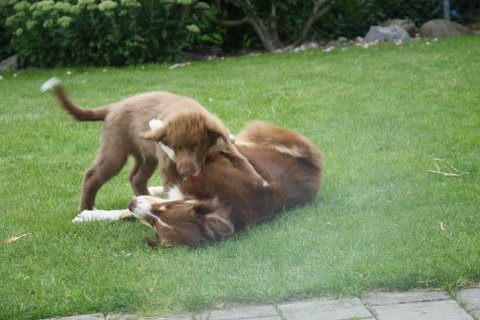 Skipper und Dylan die Tage und beobachten das Gedeihen unseres Welpen.