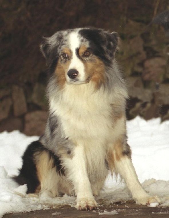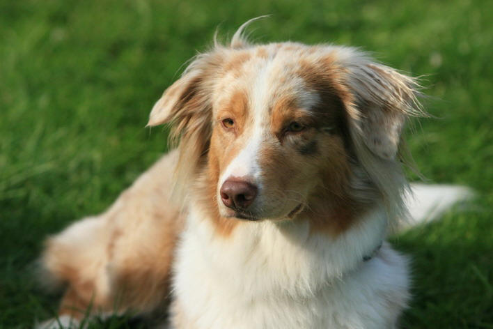 Zusammenfassung: Sehr schön gebaute red-merle Hündin.