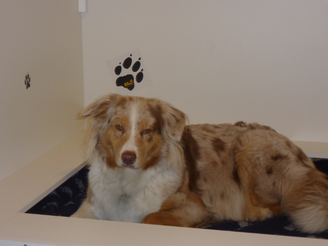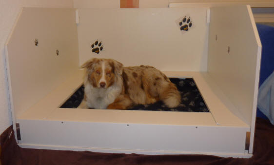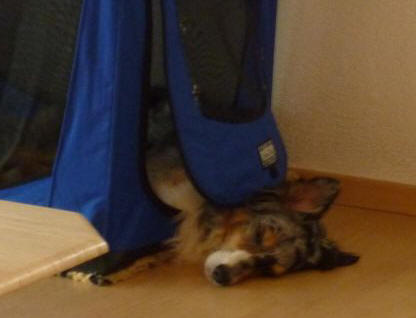 Smile hat auch bereits ein Probeliegen in der Wurfkiste gemacht. |