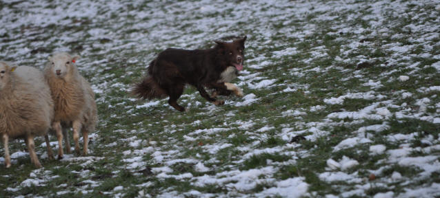 Der Hütetrieb Wenn die caniden Vorfahren unseres Hundes, die Wölfe sind, so vererbten sie auch Instinkte für das Handeln eines Hütehundes ! Forscher fanden folgendes heraus: Wenn Wölfe jagen, geschieht dies immer im Rudel, welches durch gezielte Koordination eine Gruppe möglicher Beutetiere zusammenhält. Die Tiere werden an einen bestimmten Ort getrieben, wo dann eines ausgesondert wird, um getötet zu werden. Dieses Verhalten ist genetisch gesteuert. Der Ablauf ist immer derselbe. Zunächst nähert sich jeder Wolf der Beute bis auf dieselbe Entfernung und hält dabei zu seinen rechten und linken Jagdgefährten immer den gleichen Abstand. Das Opfer wird eingekreist, wobei der Kreis immer enger gezogen wird.Der Hütehund arbeite nach den gleichen System, nur dass ihm das Rudel fehlt. Darum wird er versuchen, jeden einzelnen zu ersetzten, d.h. er übernimmt die Arbeit von einem Dutzend Wölfen, so als wäre er jeder einzelne. Zuerst bestimmt er den richtigen Abstand, den das „Rudel“ von der Herde halten soll. Danach rennt er herum, um alle Positionen einzunehmen sie sonst von seinen Kumpanen besetzt worden wären. Während er sich von einem „Posten“ zum nächsten begibt spielt er nacheinander die Rollen der fehlenden Jagdgefährten und „umzingelt“ die Herde in weit ausholenden Kreisbewegungen. Durch dieses Verhalten, wobei er immer an den Positionen stehen bleibt, an denen sich eigentlich ein andere Wolf befinden soll, treibt er die Schafe an den Aussenrändern der Herde in die Mitte des Kreises und hält sie so zusammen. |