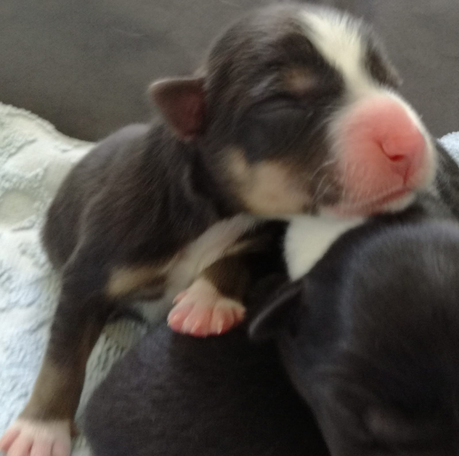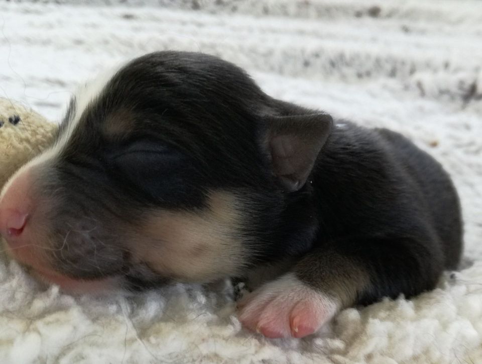 Glade vom rauhen Ostseewind Rufname: Glade Rüde / tricolor / langhaar Besitzerin: ?? geb. 0.30 Uhr / 290gr.