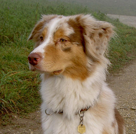 Zusammenfassung: Sehr schön gebaute red-merle Hündin.
